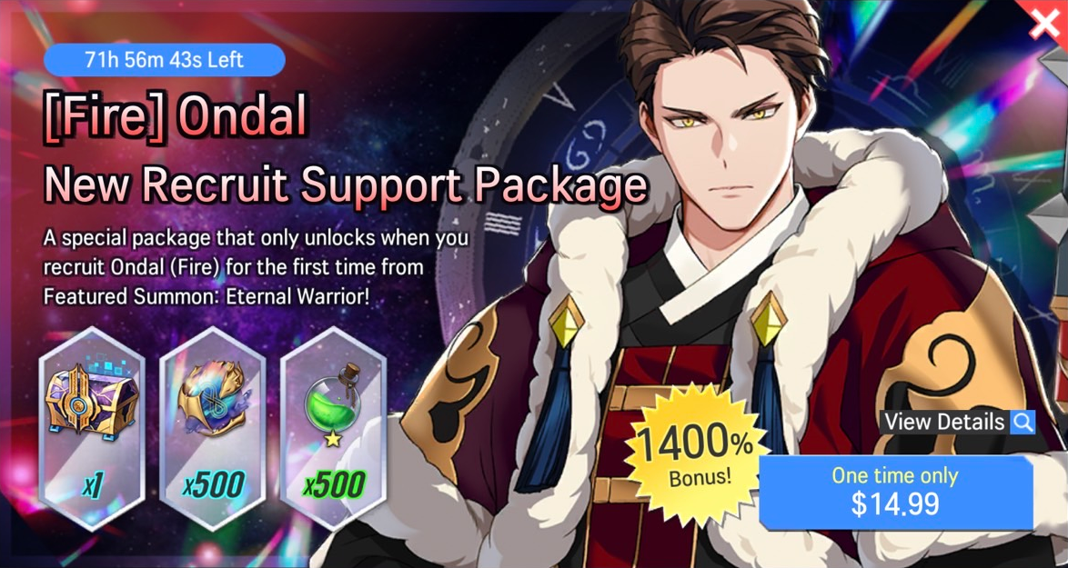 ※ A special package that unlocks only when you recruit Ondal (Fire) from Featured Summon: Eternal Warrior.