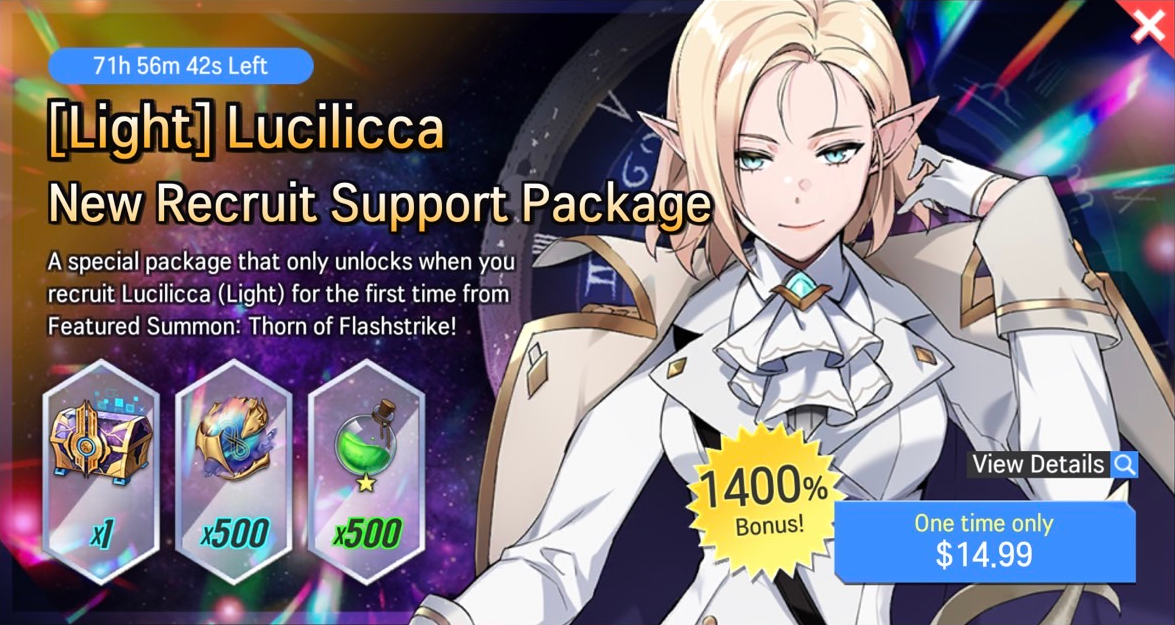 ※ Players who have already recruited Lucilicca (Light) must summon Lucilicca (Light) from Summon in order to purchase the package.