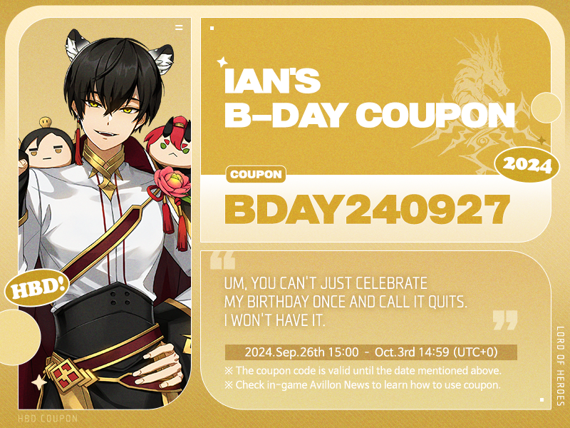 - iPhone : Go to [ Coupon Site ] with your Player ID found in the [Support]