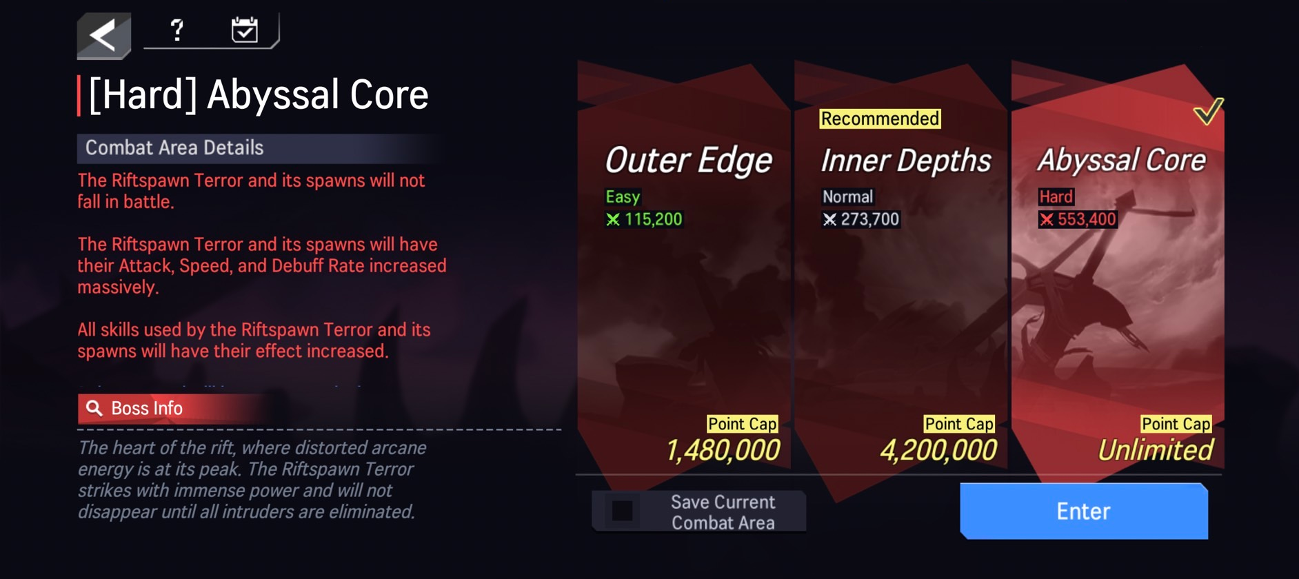 - Players are required to select a combat area engaging in battle in the Temporal Rift. - The point cap and traits of the Riftspawn Terror players face vary depending on the combat area.