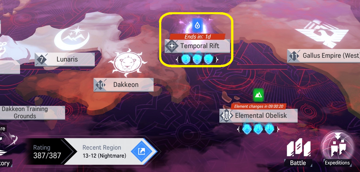 - The Temporal Rift can be accessed on the World Map by clicking on Story via the citadel. - The Temporal Rift unlocks upon restoring the records for War of the Tyrants - Book of Prophecy DAY 12. 9:14. War of the Tyrants. ※ Lords who unlocked the War of the Tyrants before the unlock conditions were changed must now meet the new requirements for the Temporal Rift to open. - New requirements for unlocking the War of the Tyrants: Clear Story Hard Difficulty 8-16.