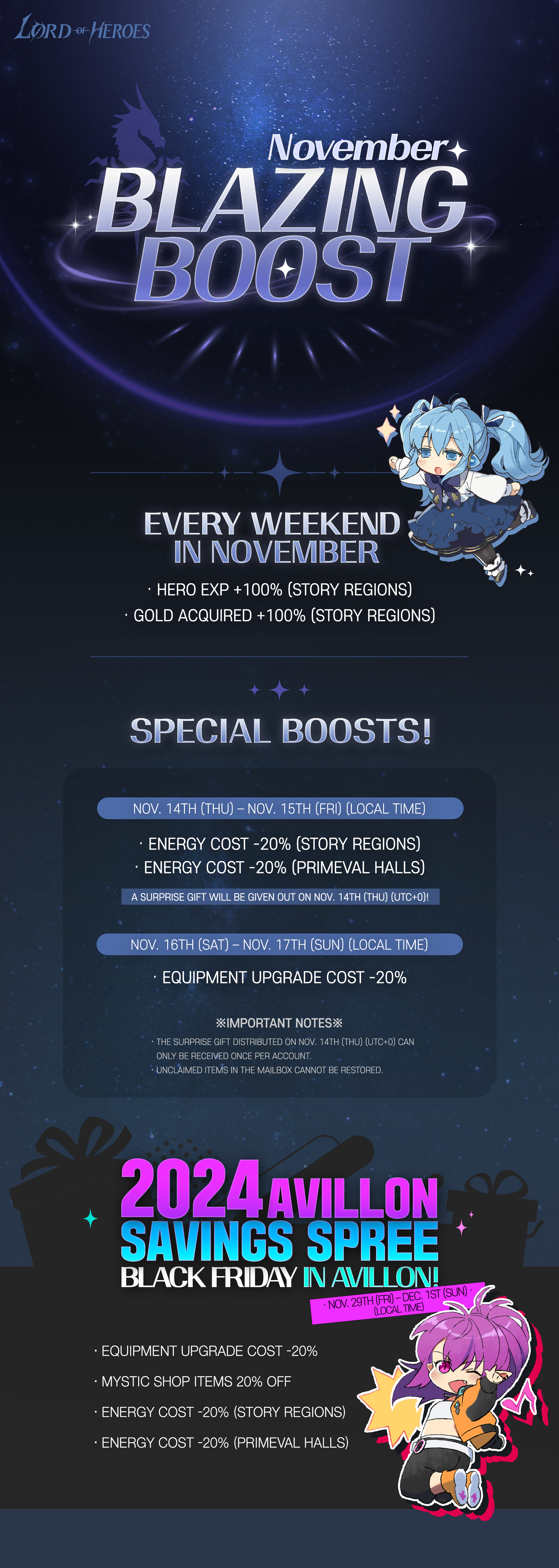 Event [Event] November Blazing Boost GM Lunaris Read more posts by this author. GM Lunaris Wednesday, October 30th 2024