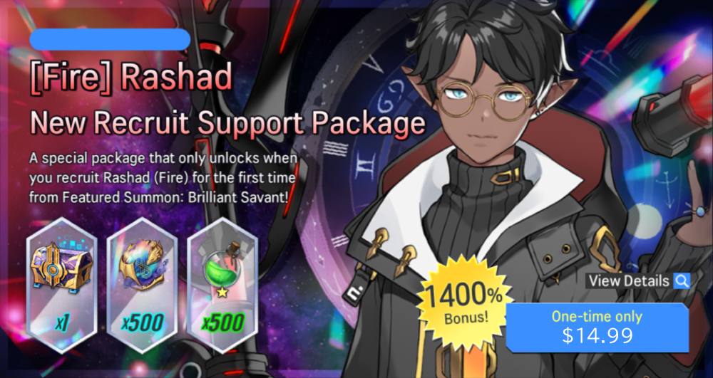 ※ A special package that unlocks only when you recruit Rashad (Fire) from Featured Summon: Brilliant Savant.