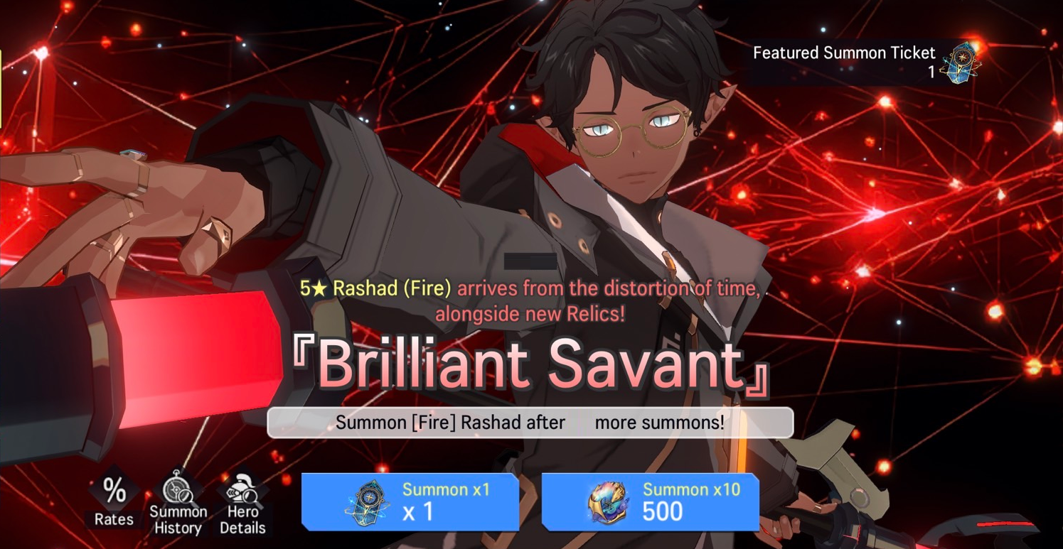 3) Summonable Relics and Heroes : ★5 Rashad (Fire)