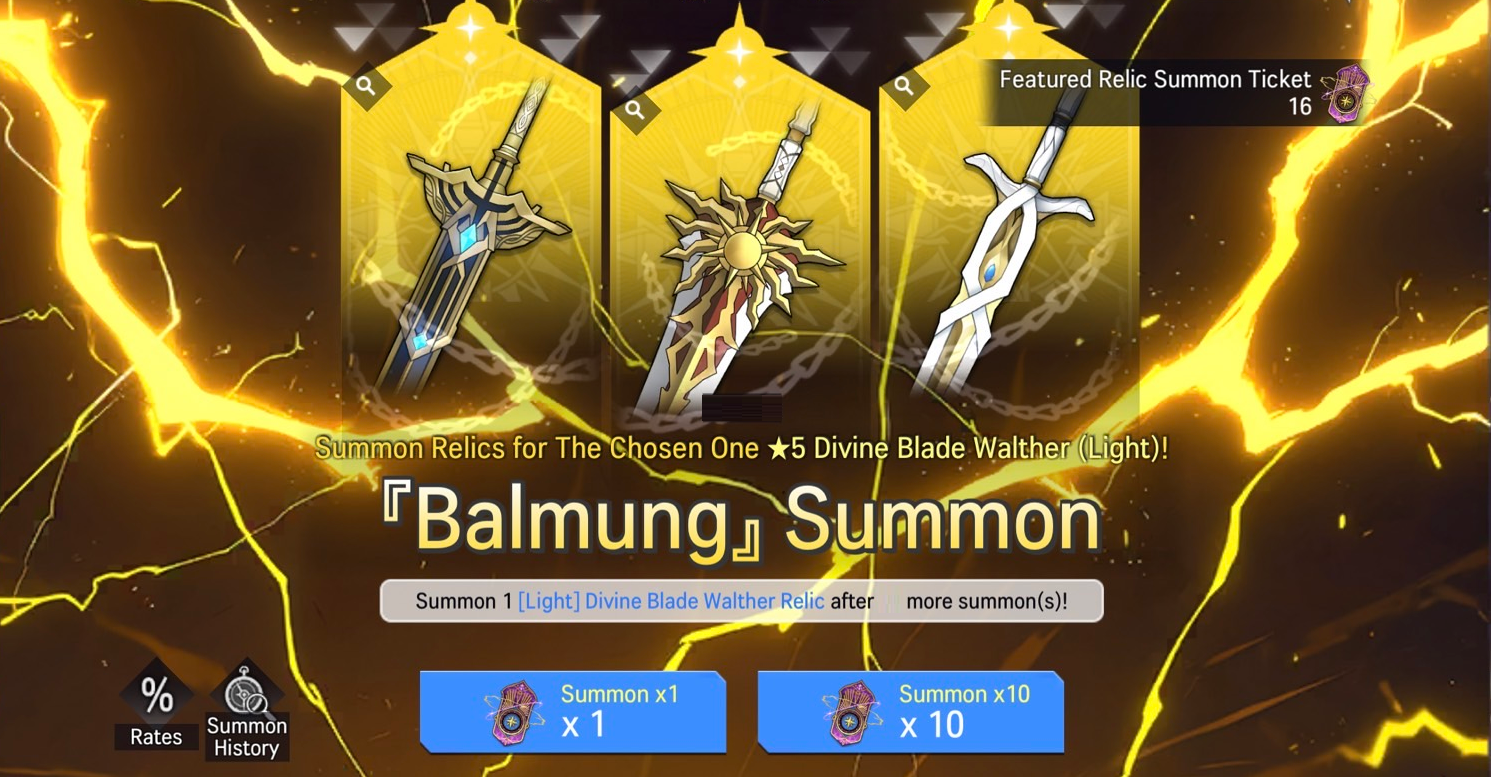 ※ Detailed information on summon rates for obtainable Relics are available via the Rates button.
