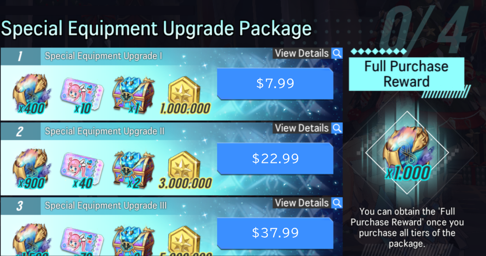 ※ This package is a tiered package. Players must purchase the previous tier to unlock the next tier of the package.