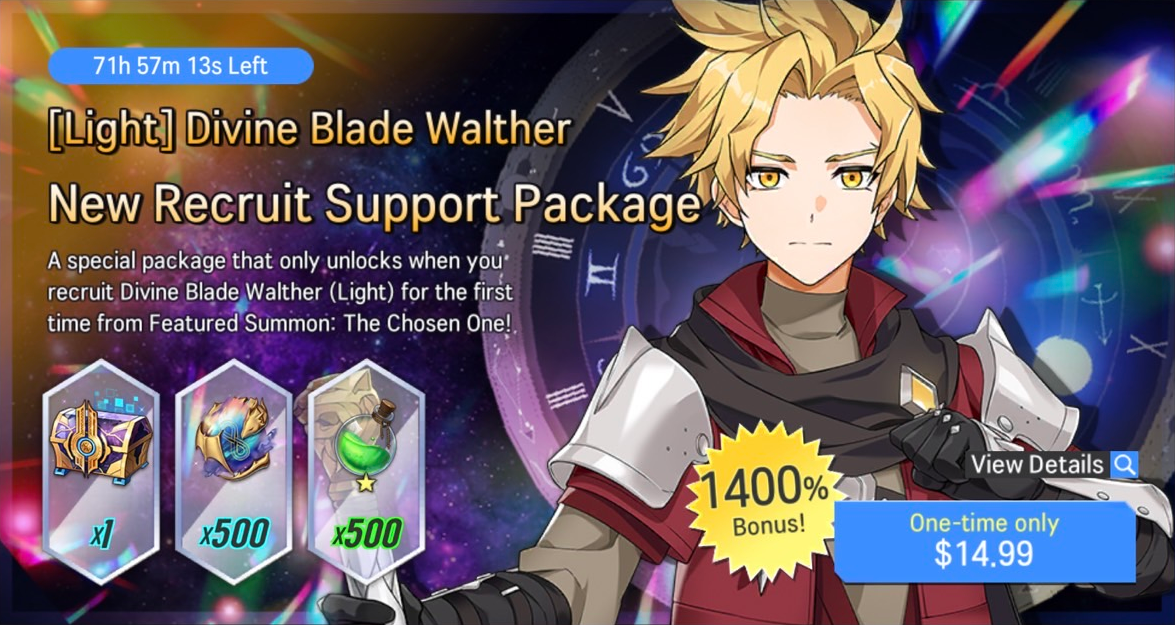 ※ A special package that unlocks only when you recruit Divine Blade Walther (Light) for the first time from Featured Summon: The Chosen One.