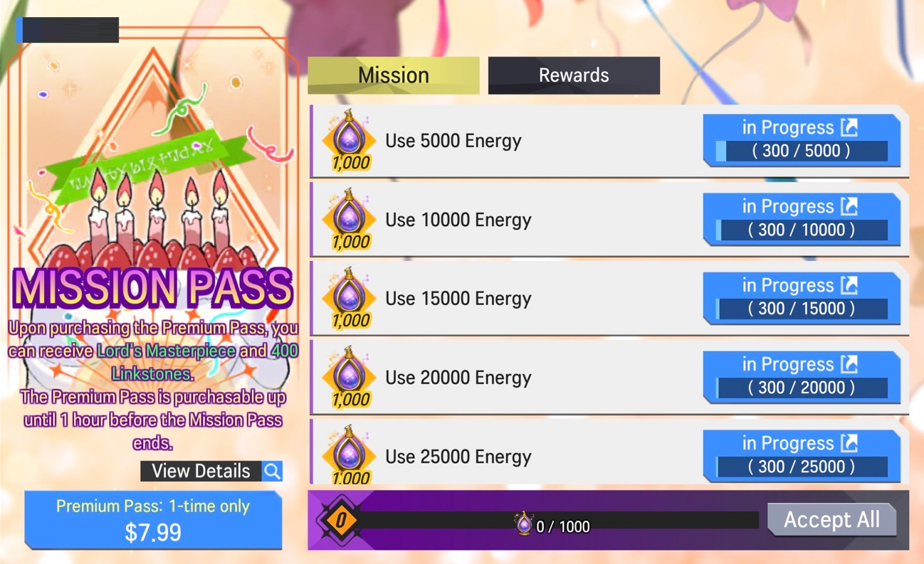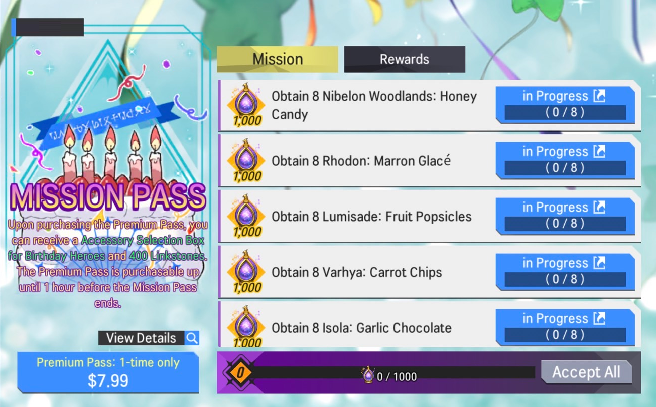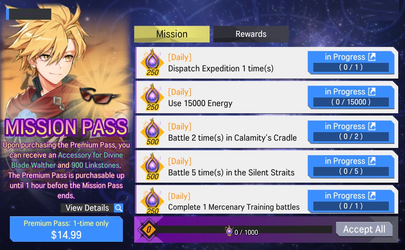 2) Mission/Premium Pass Rewards
