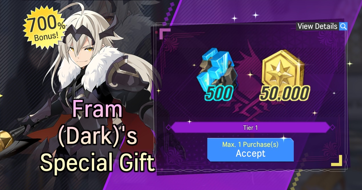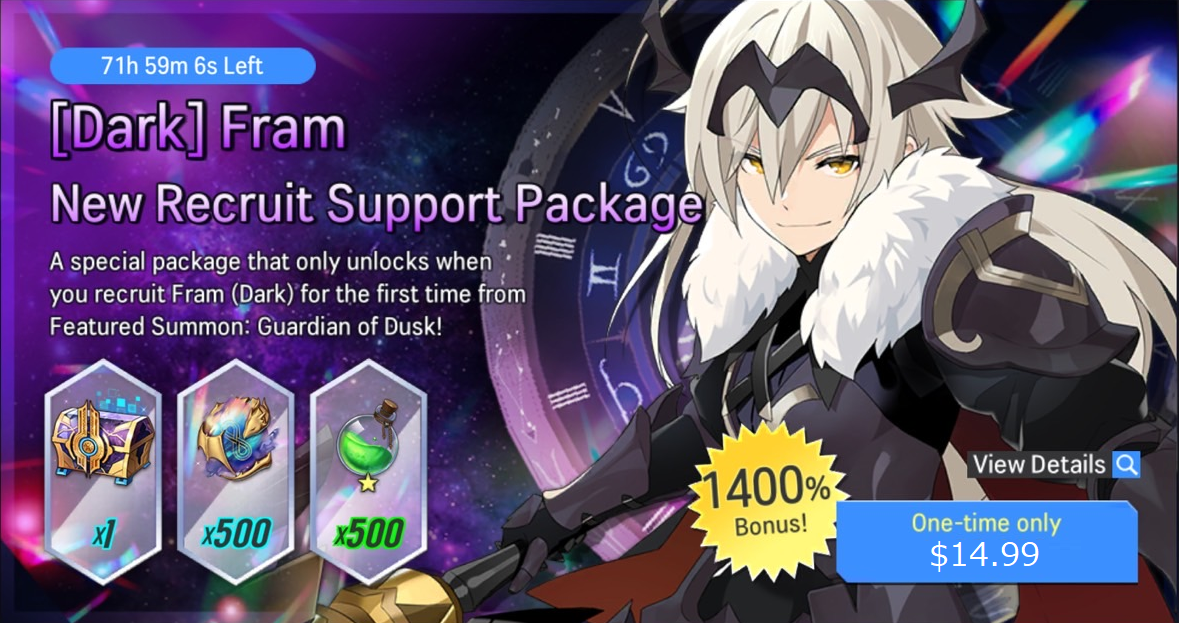 ※ A special package that unlocks only when you recruit Fram (Dark) for the first time from Featured Summon: Guardian of Dusk.