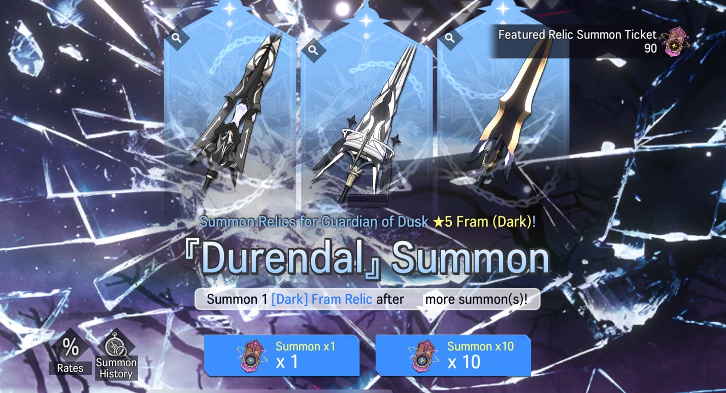 ※ Detailed information on summon rates for obtainable Relics are available via the Rates button.