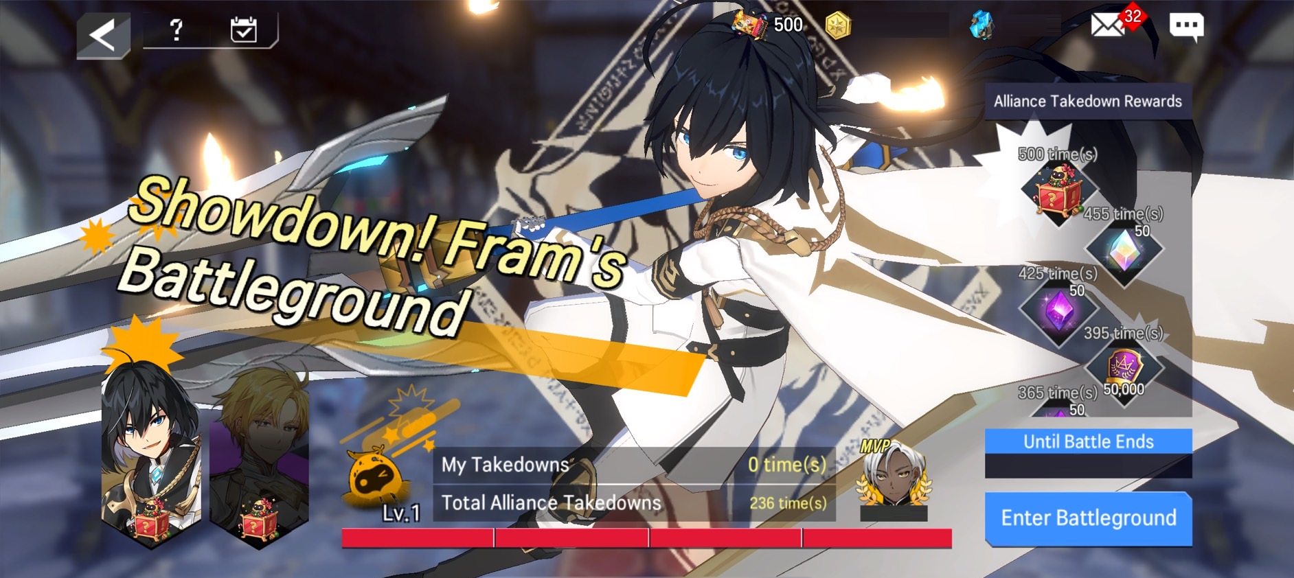 - Players need to be in alliance to participate in Battleground battles in the Showdown! Knights of Avillon event. Battle Tickets are required to enter Battleground battles.