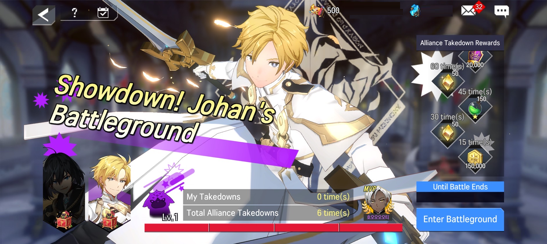 - Players can obtain rewards based on the total amount of takedowns within their associated alliance. The rewards are as listed below.
