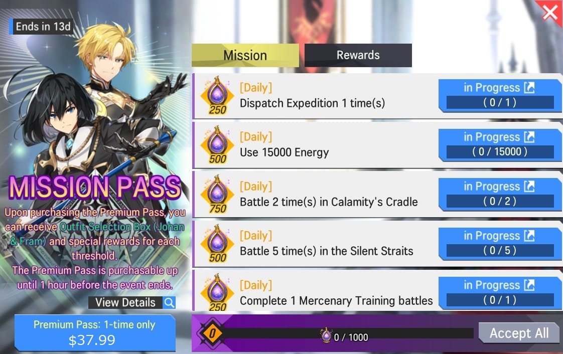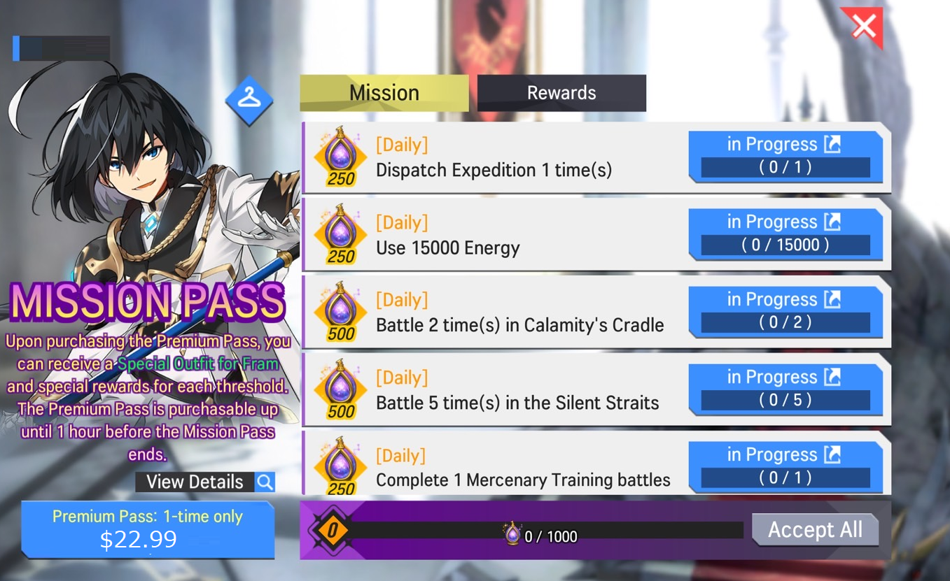 2) Mission/Premium Pass Rewards