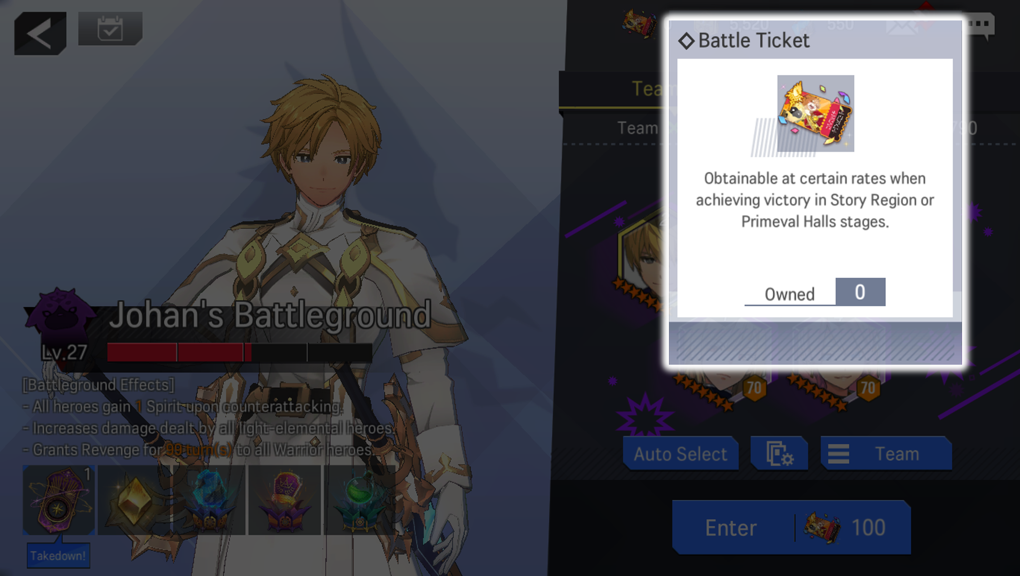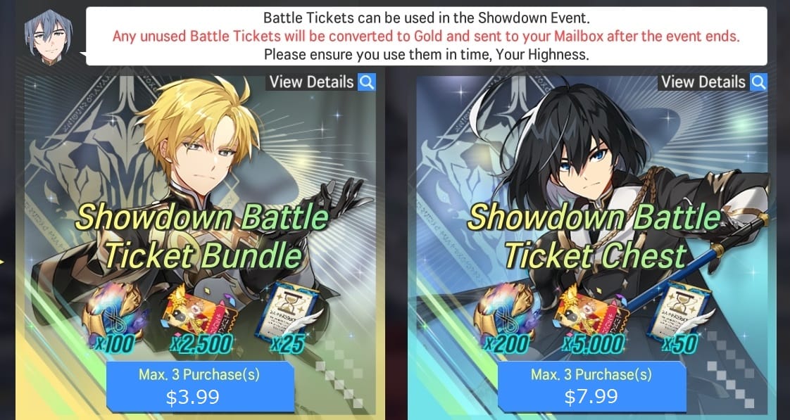 ※ Battle Tickets are usable in the Showdown! Knights of Avillon event. Remaining Battle Tickets are automatically converted to Gold and sent to your Mailbox when the event ends.
