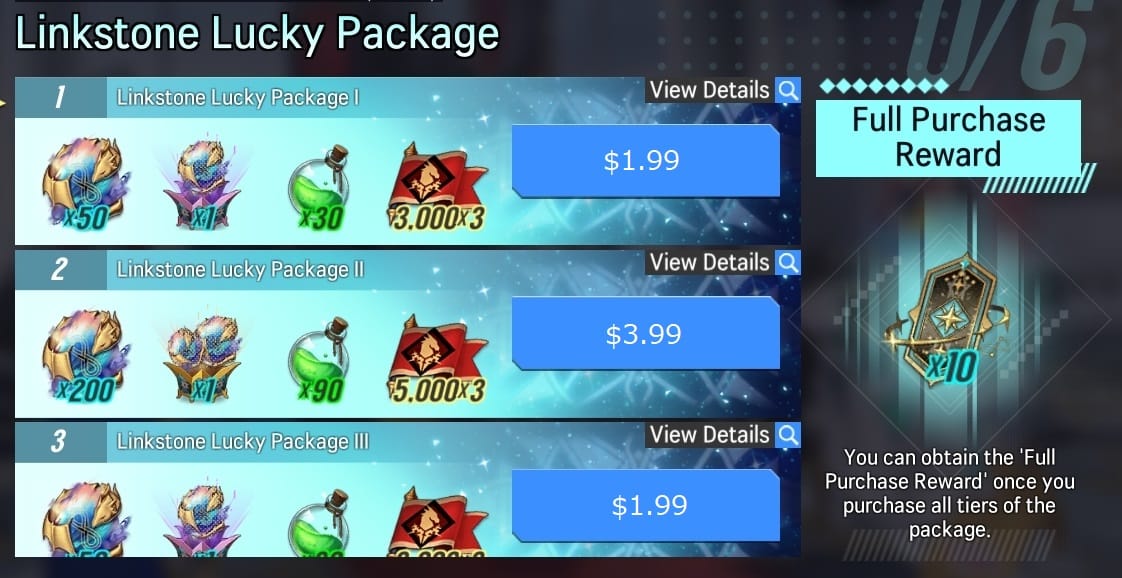 ※ You will receive 10 Link Summon Tickets once you purchase all tiers of the package.