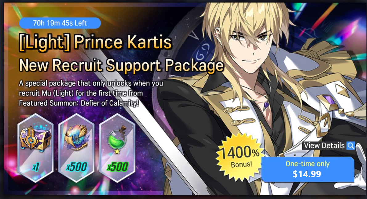 ※ A special package that unlocks only when you recruit Prince Kartis (Light) for the first time from Featured Summon: Defier of Calamity.