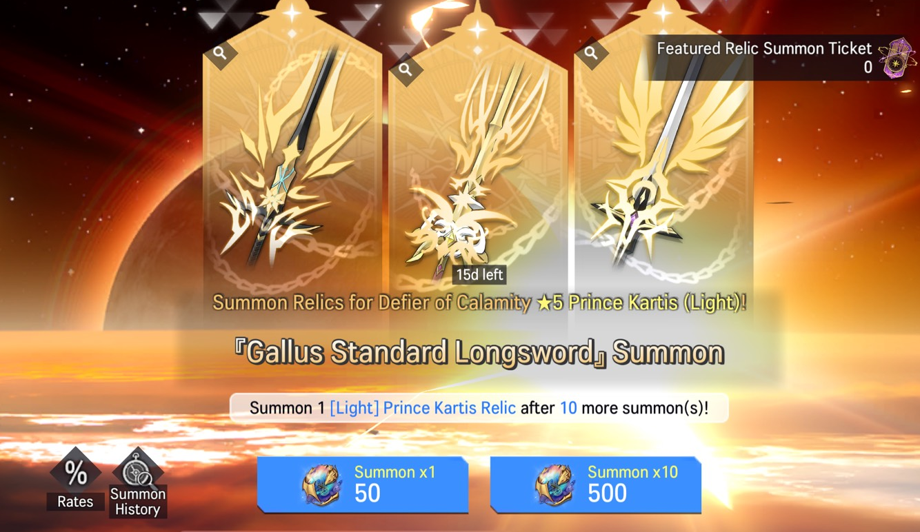 ※ Detailed information on summon rates for obtainable Relics are available via the Rates button.