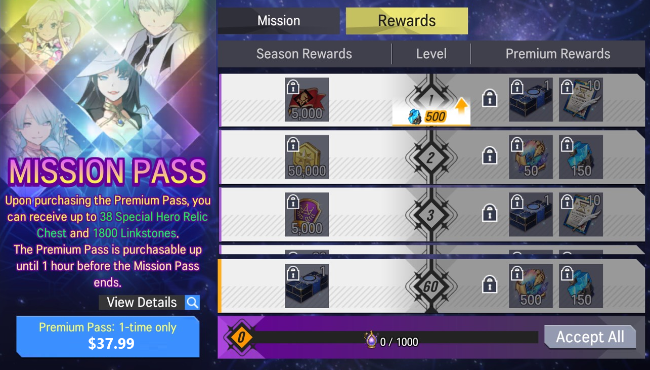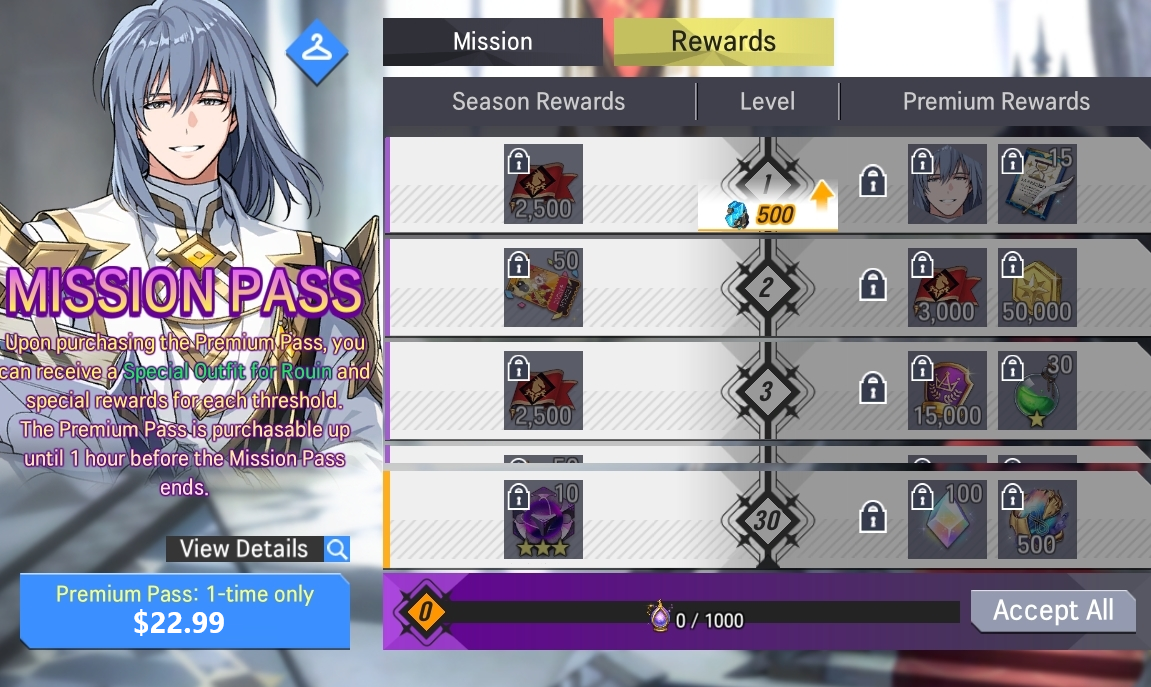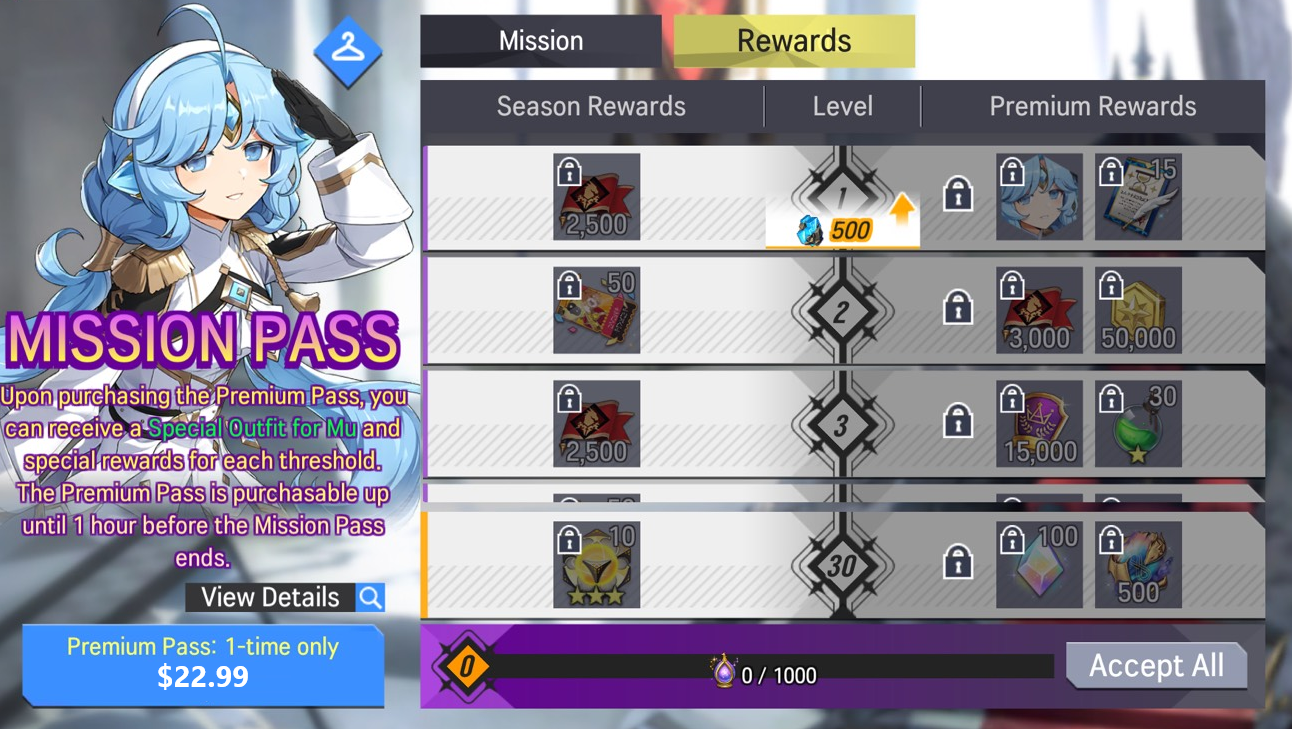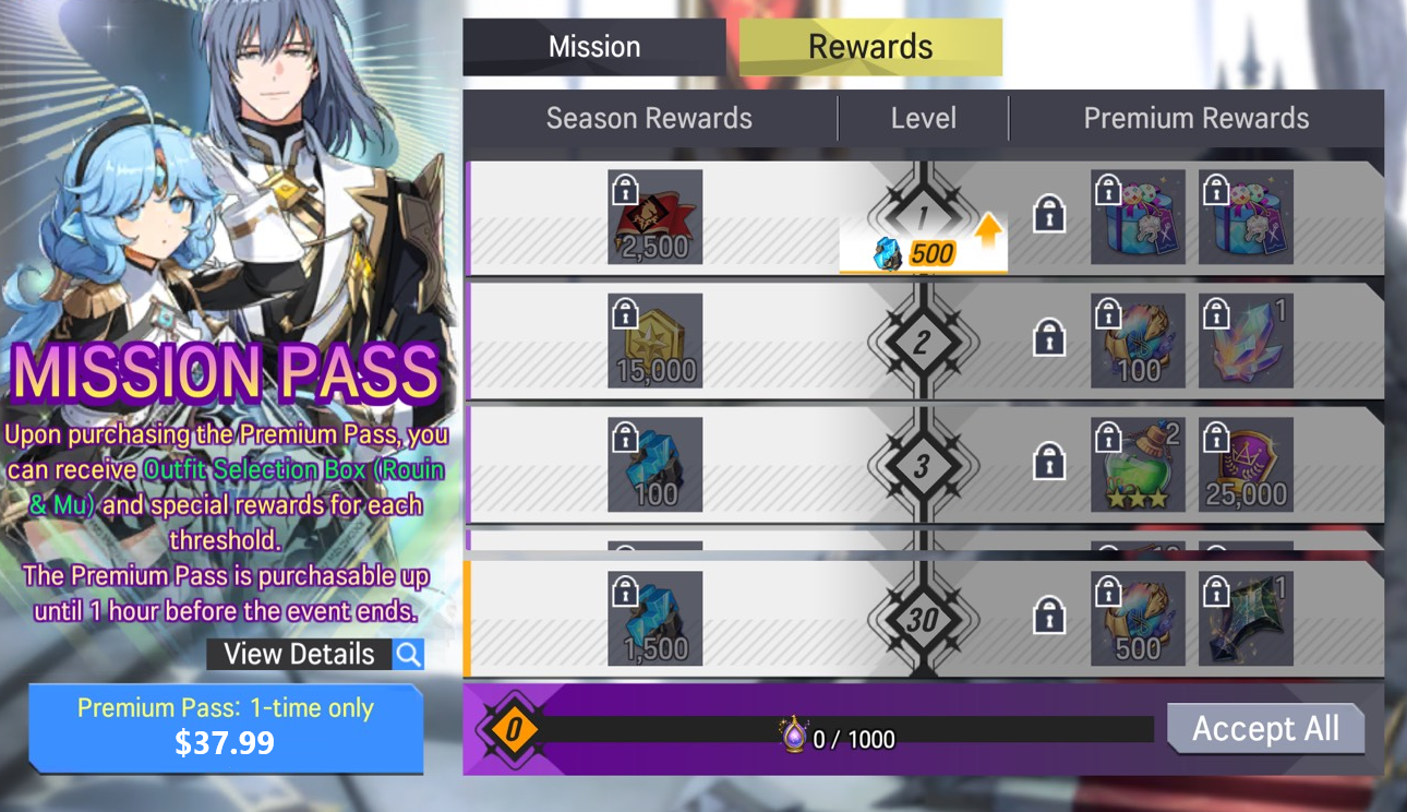 ※ The Premium Pass is purchasable up until 1 hour before the Mission Pass ends.- Price: USD 14.99 (Once per account)