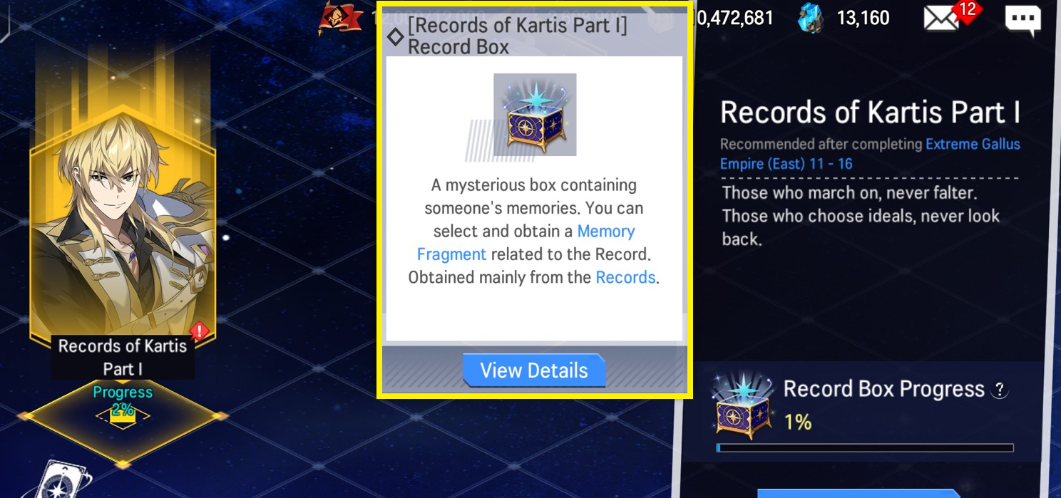 - Record Boxes will be sent to your Inbox after reaching 100% Record Box Progress. Players can obtain a Memory Fragment of their choice by opening the Record Box. The obtainable Memory Fragment is based on the Record the player reached 100% Record Box Progress in.