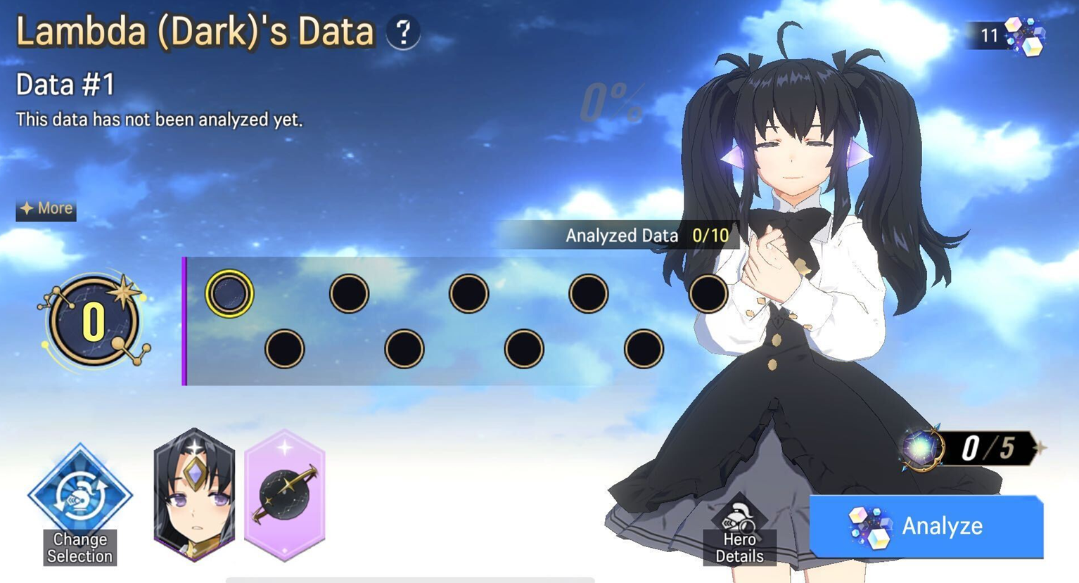 - When data analysis is completed for an already-recruited Hero, players will receive their Aptitude. When data analysis is completed for an already-obtained Relic, they will obtain Tier Level EXP.