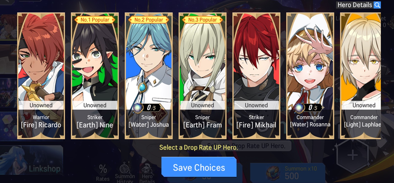 - Players can select a hero they would like to recruit when summoning on Link Summon.