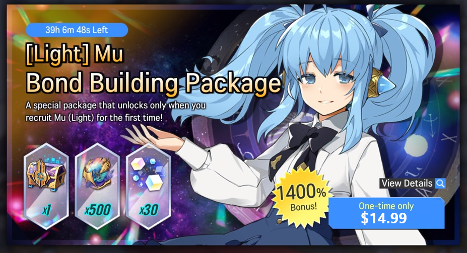 - This package is available after recruiting Mu (Light) and can only be purchased once.