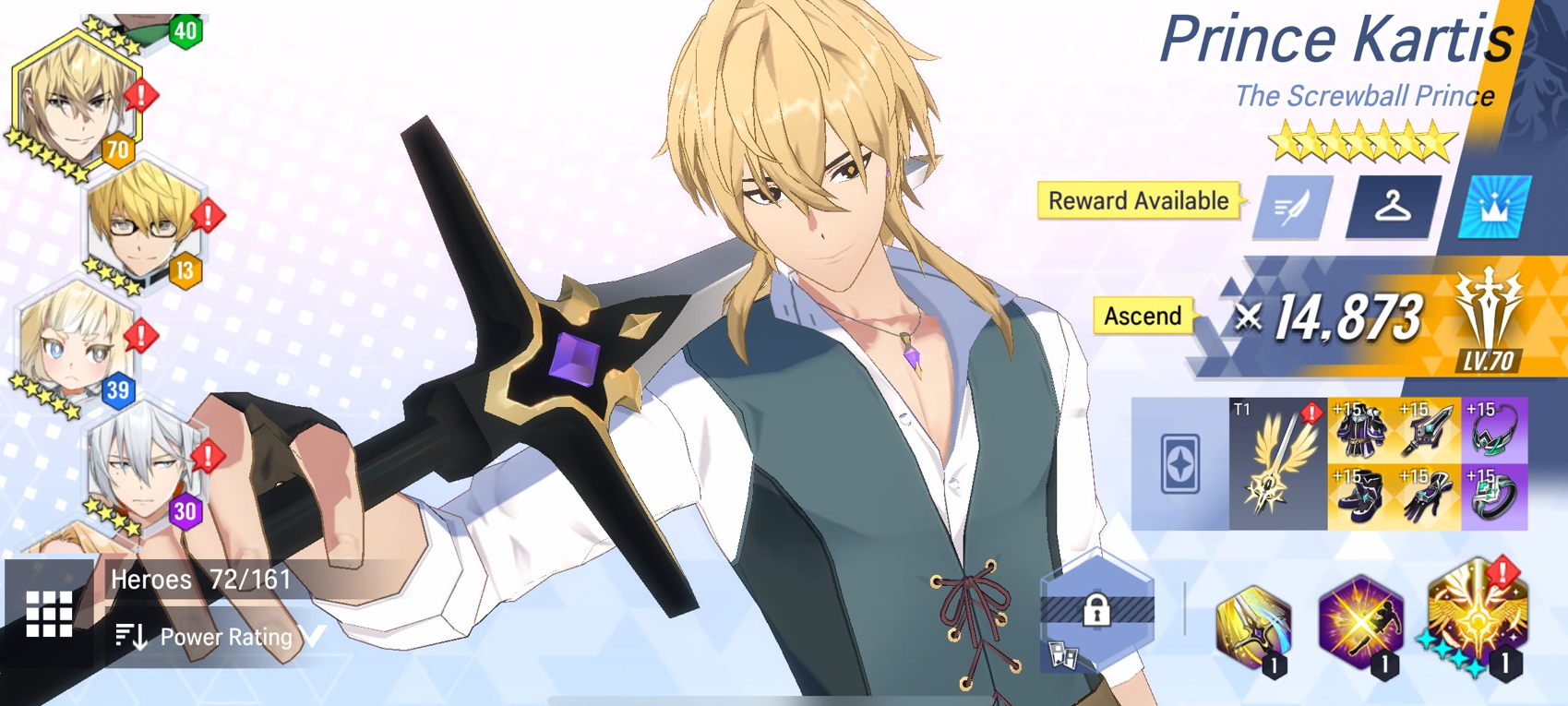 3) Summonable Relics and Heroes: ★5 Prince Kartis (Light)