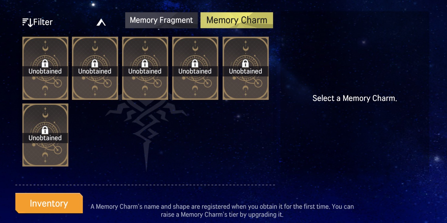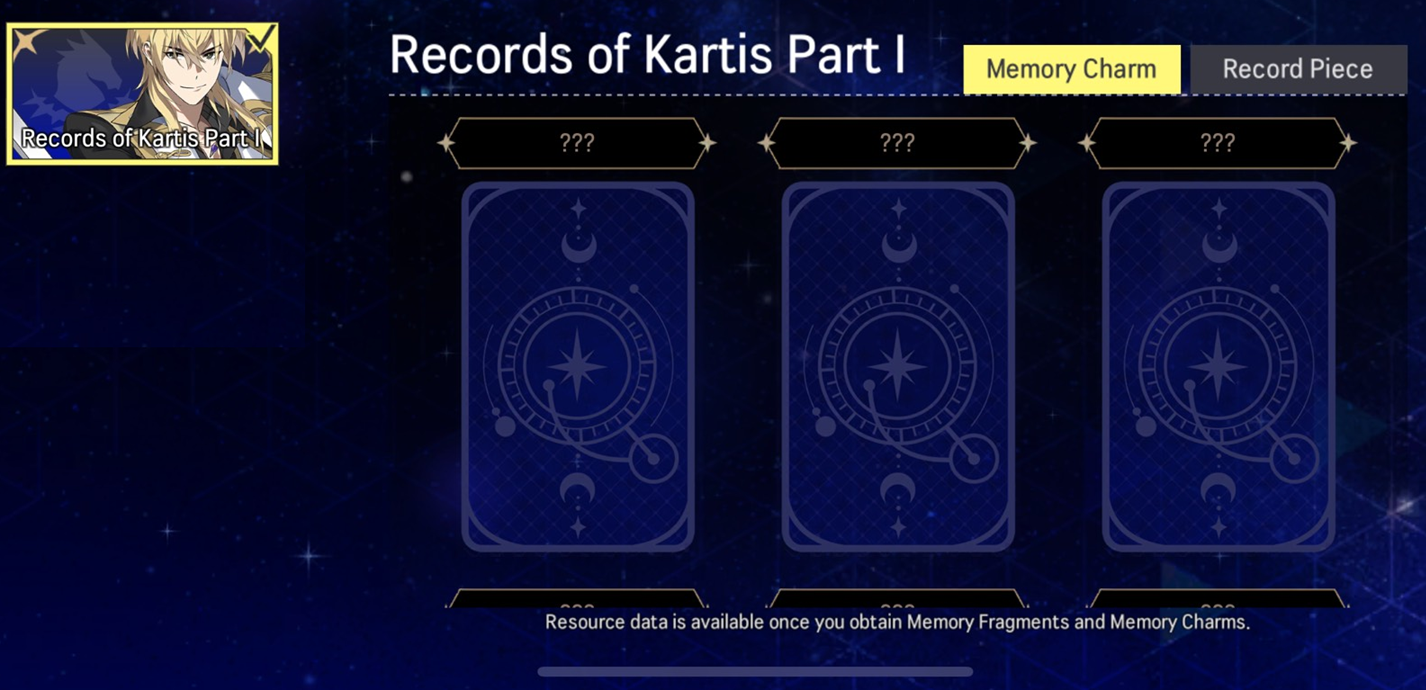 - Players can use Gold and Memory Fragments to increase the Tier Level of Memory Charms. - Players can check out obtainable Memory Charms by tapping on the Memory Charm tab in the Memory Vault of the Records.