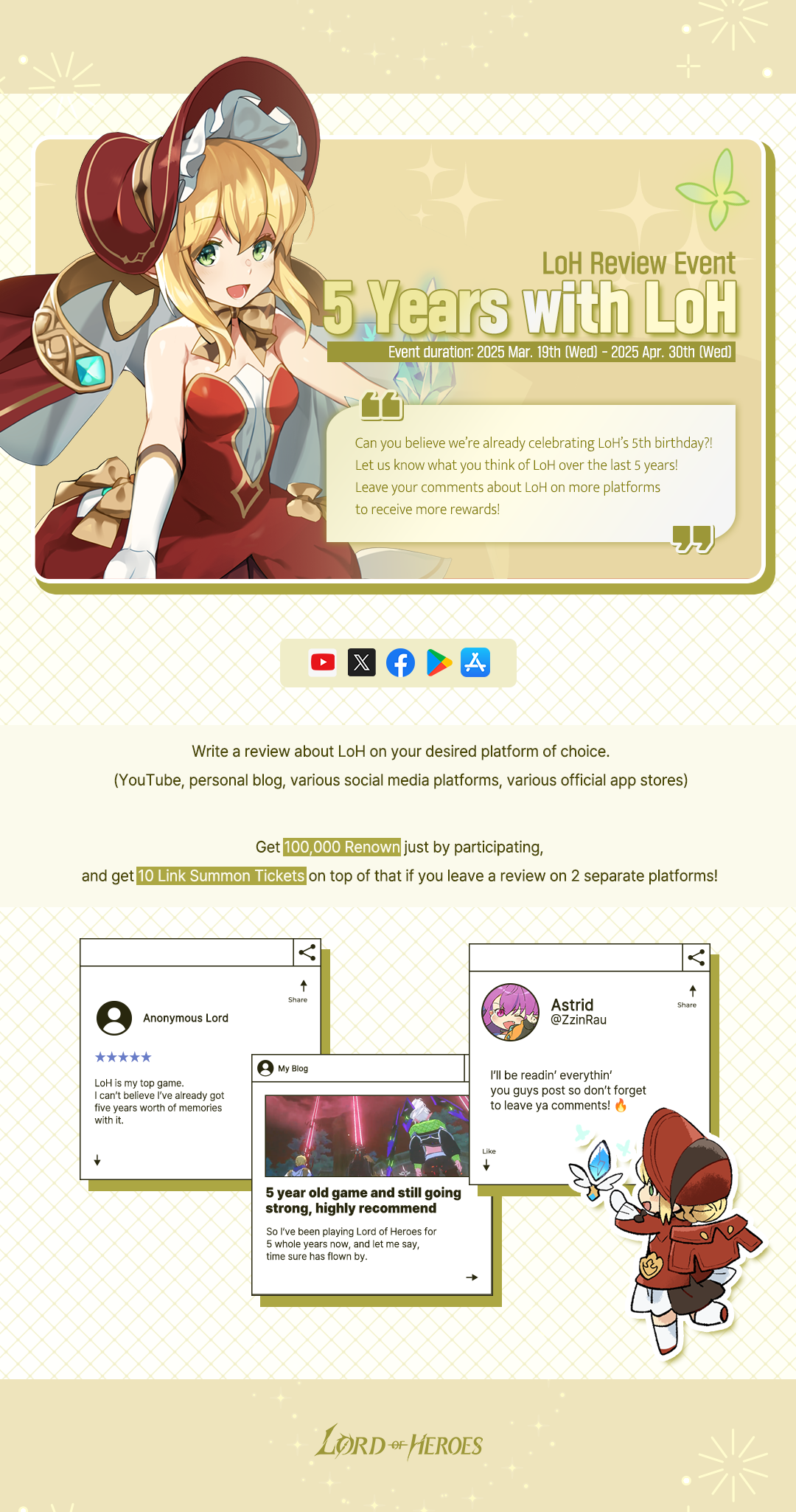 4. In the case of multiple event submissions using one Lord of Heroes account, only the first submitted social media link will be counted and rewards will be given only once.