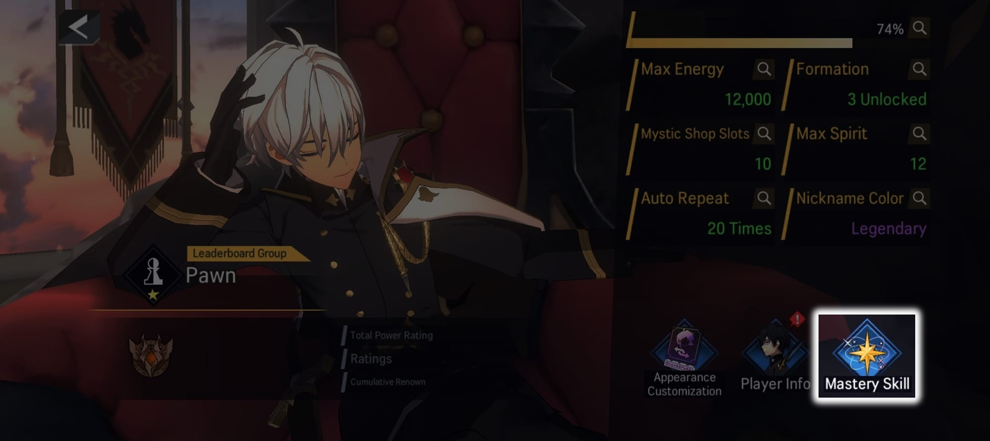 - Mastery Skill screen can be accessed through Main screen > Lord Info.