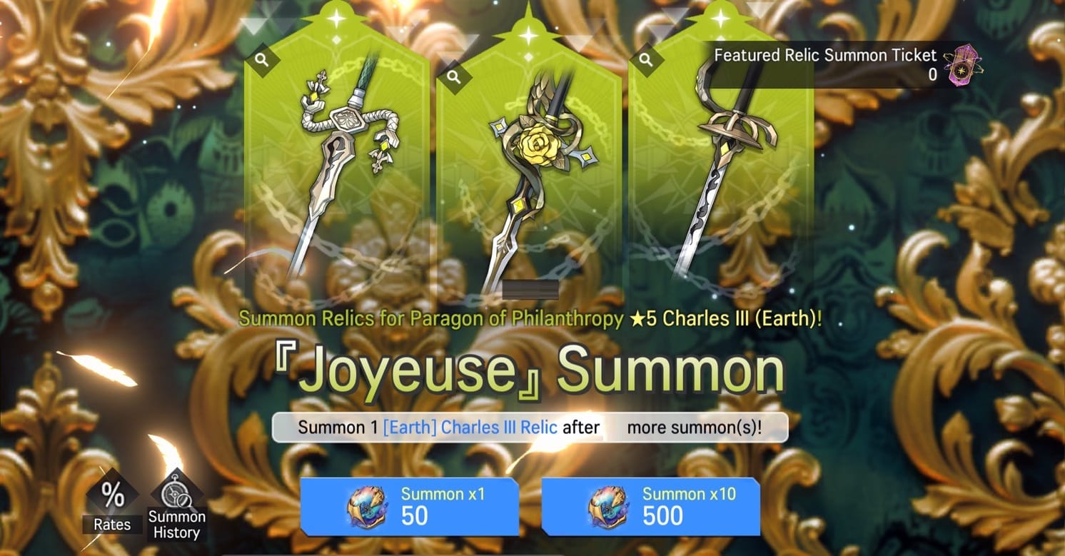 ※ Detailed information on summon rates for obtainable Relics are available via the Rates button.