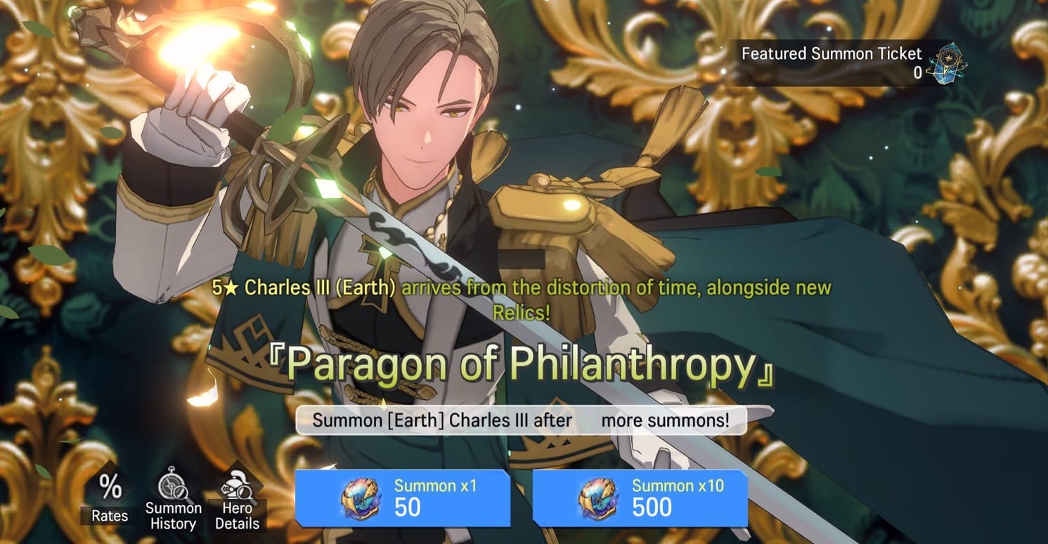 3) Summonable Relics and Heroes: ★5 Charles III (Earth)
