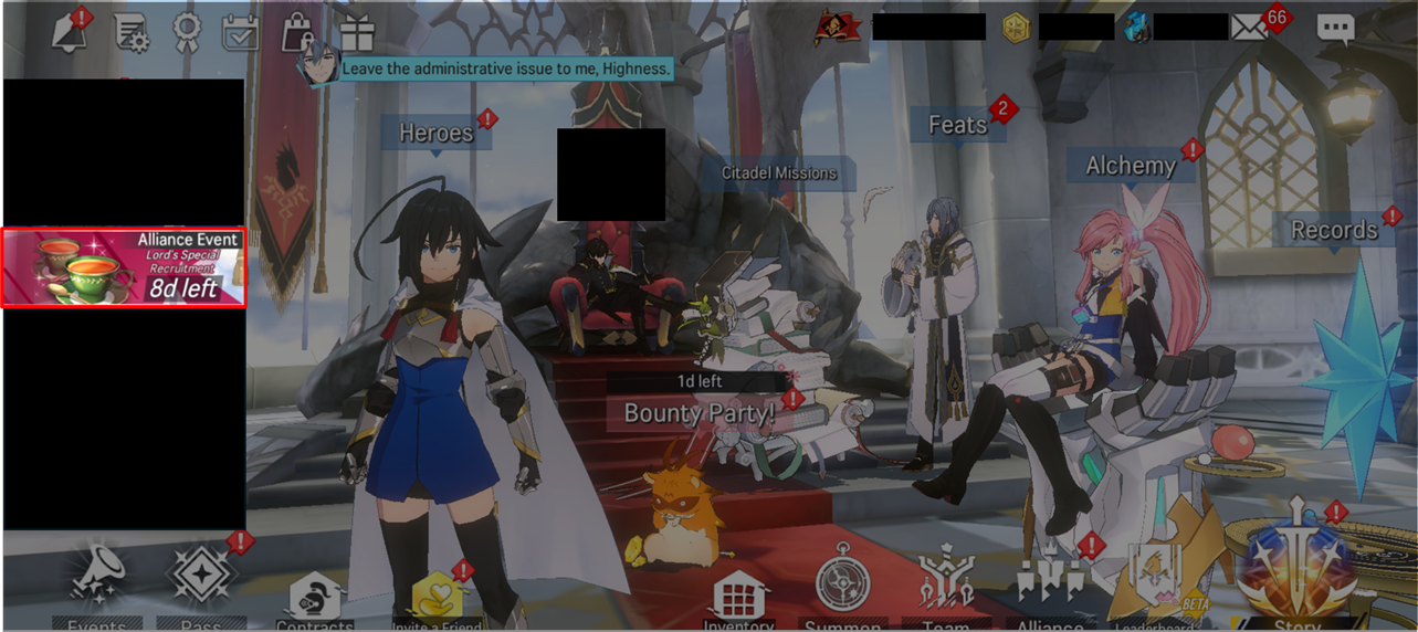 - Enter the Lord's Special Recruitment event screen by tapping the event banner in the Citadel.