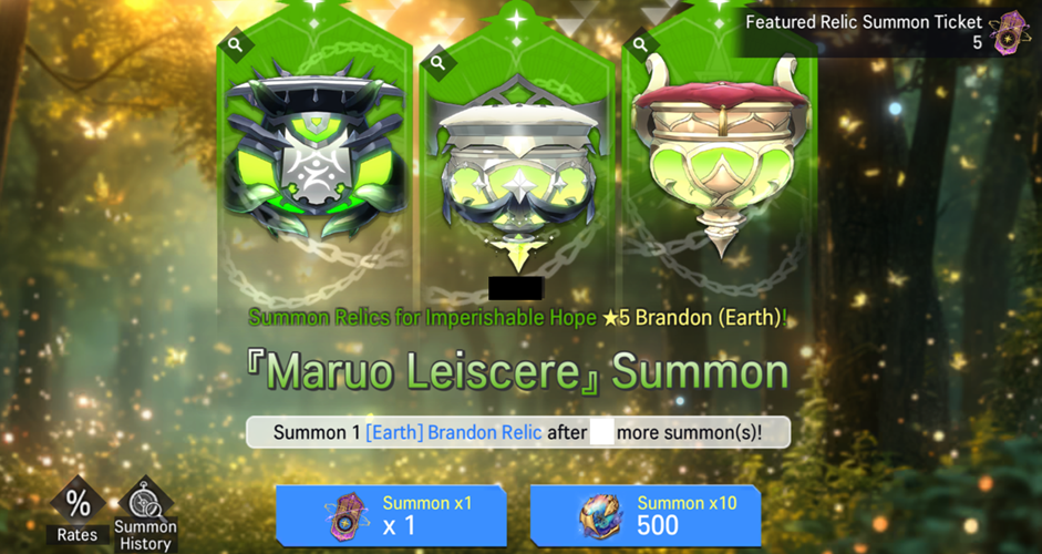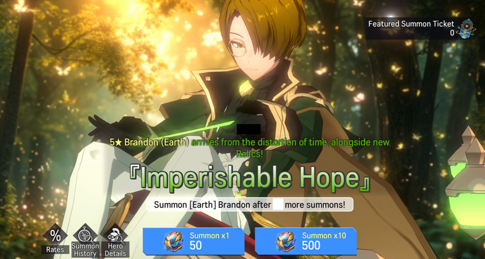 3) Summonable Relics and Heroes: ★5 Brandon (Earth)