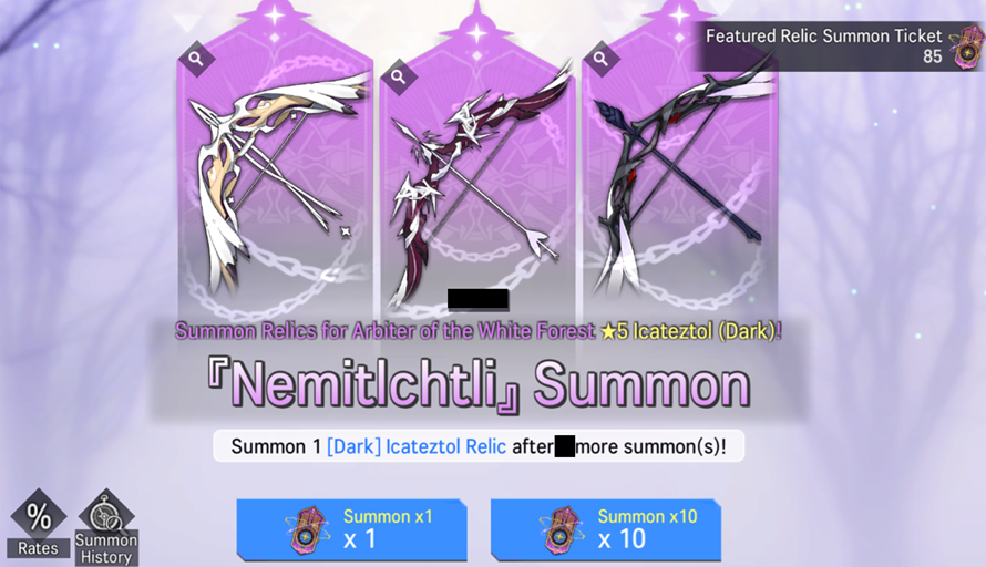 ※ Detailed information on summon rates for obtainable Relics are available via the Rates button.