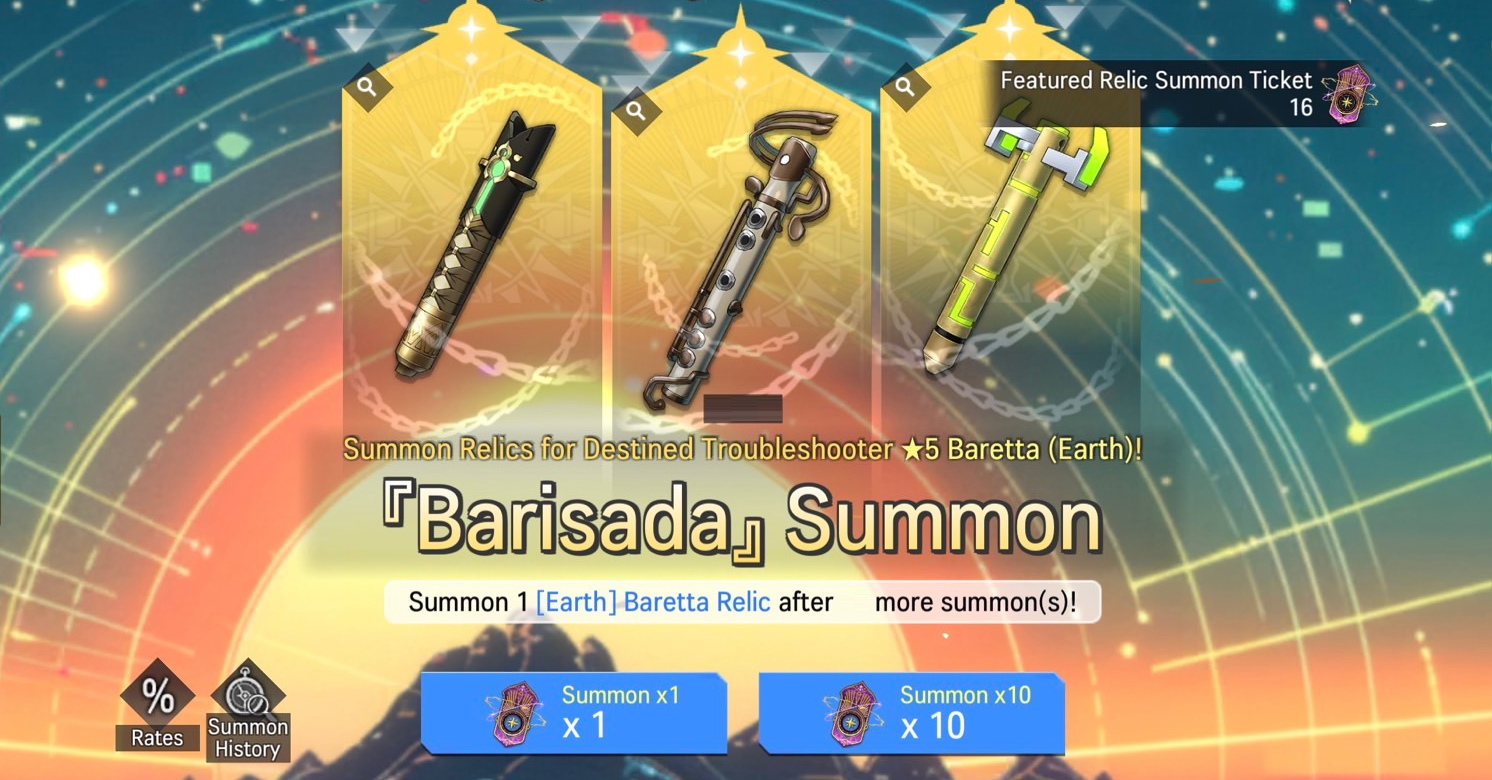 3) Summonable Relics and Heroes: ★5 Baretta (Earth)
