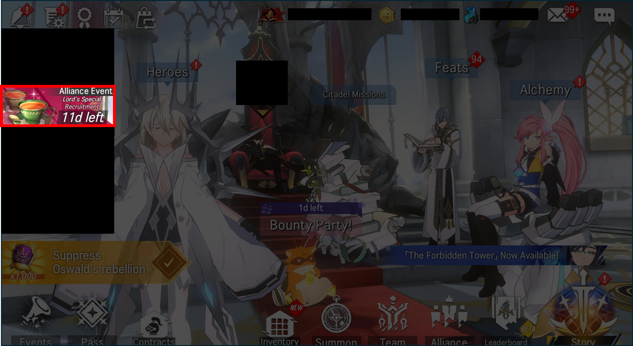 - Enter the Lord's Special Recruitment event screen by tapping the event banner in the Citadel.