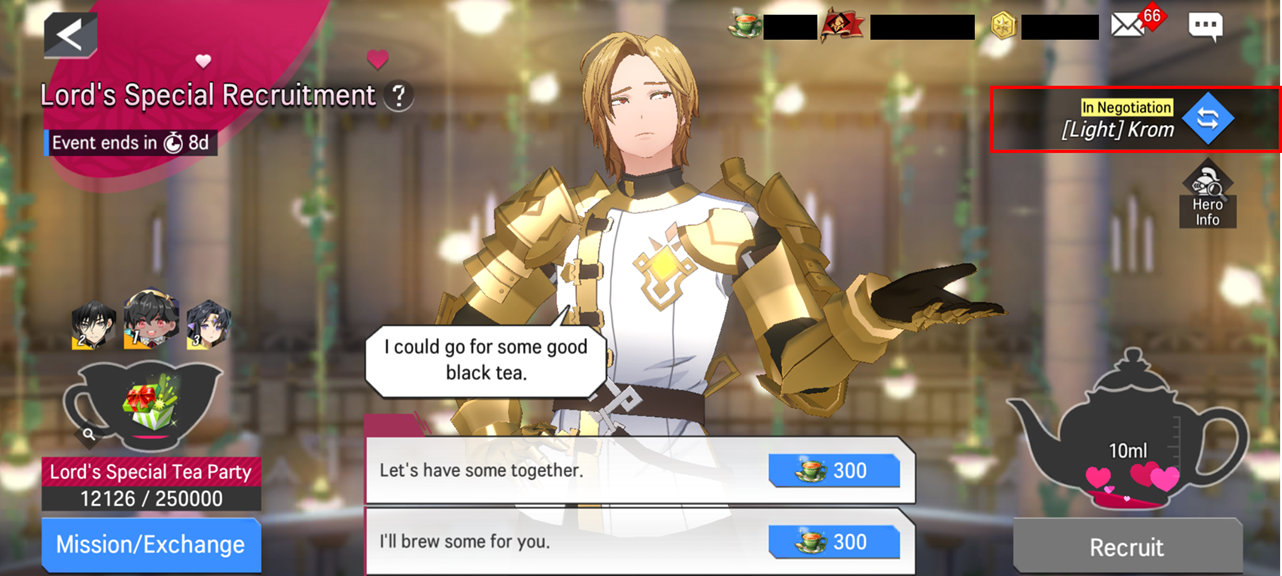- Collect 'Warm Cup of Tea' through Check-In and by completing missions to recruit your favorite heroes!
