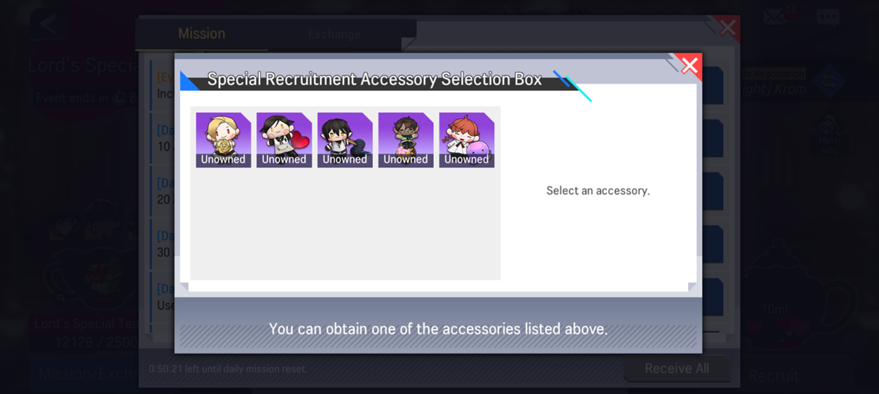 - You can also earn an Accessory Selection Box where you can select and obtain a Replica accessory for the event hero upon completing a mission.