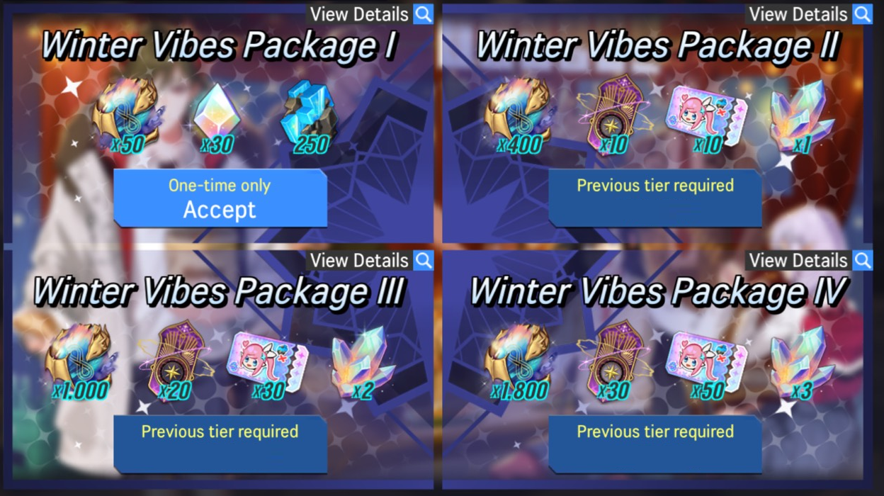 ※ This package is a tiered package. Players must purchase the previous tier to unlock the next tier of the package. (i.e., Purchasing Level 2 unlocks the Level 3 purchase option)