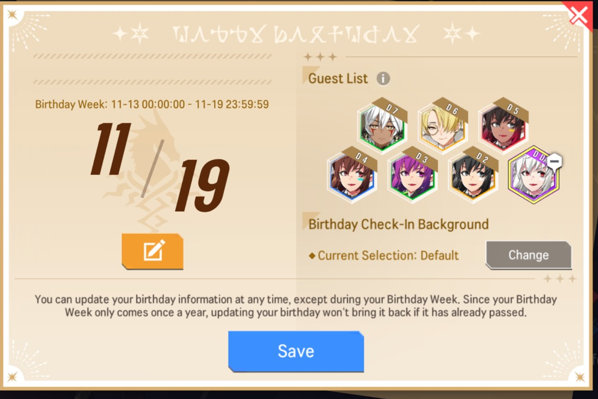 - You can change your selected heroes as long as it's before your Birthday Week.
