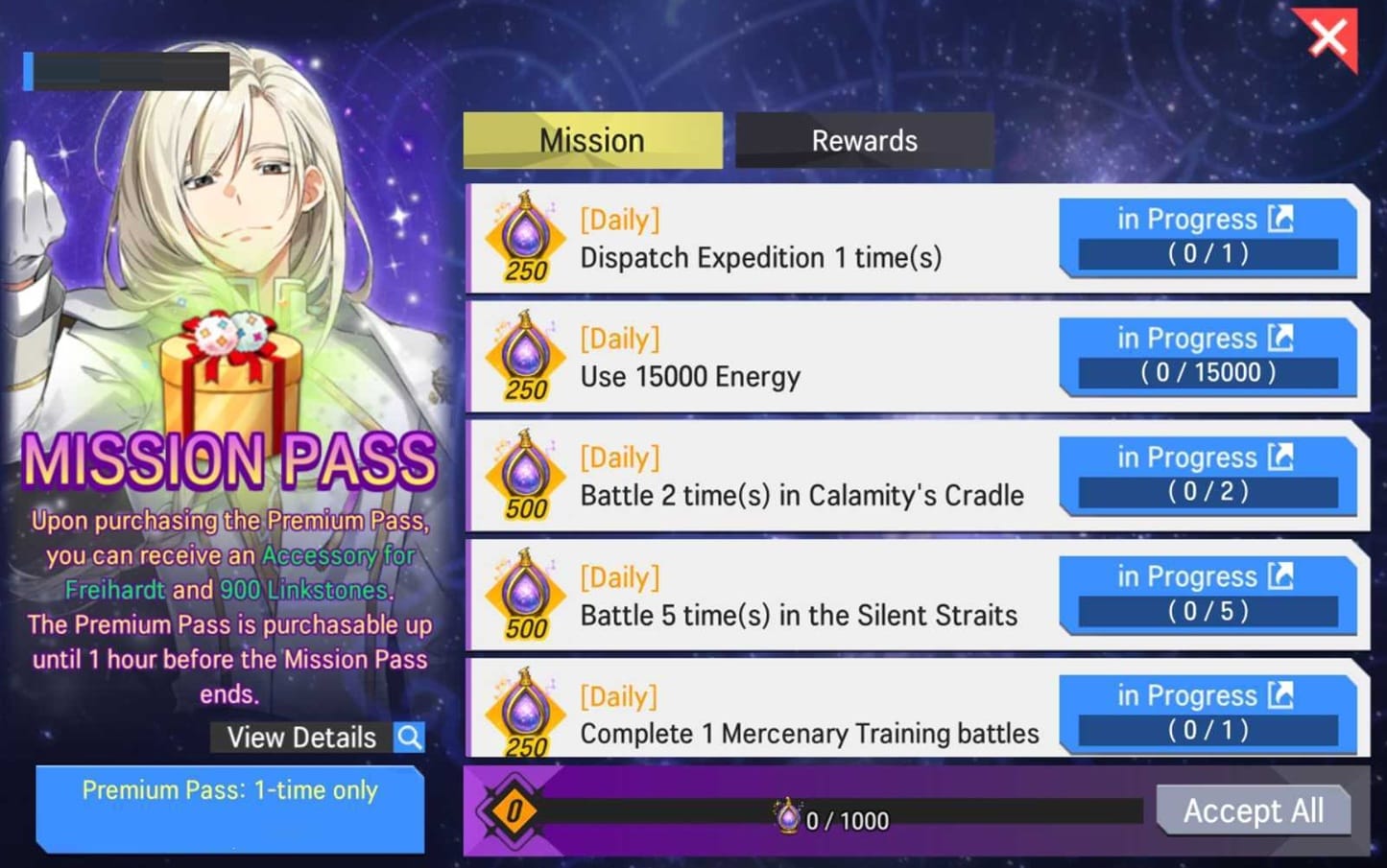- Various rewards such as accessories are obtainable by completing missions from the Mission Pass.