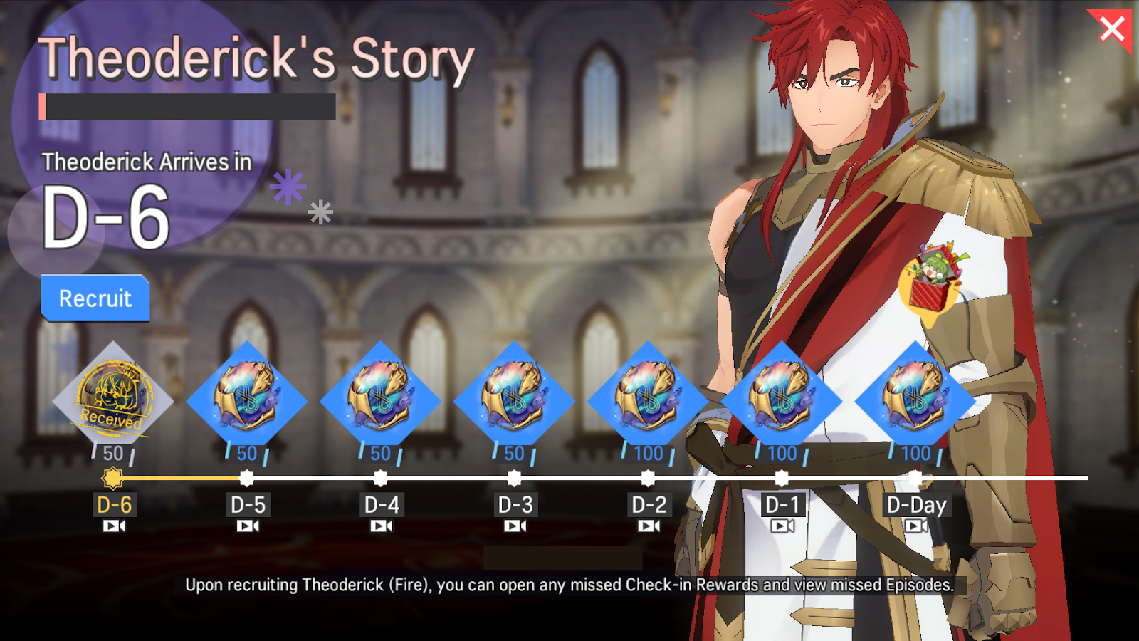 ※ After the Check-In Event ends, Theoderick's Story will not be accessible even if you recruit Theoderick.